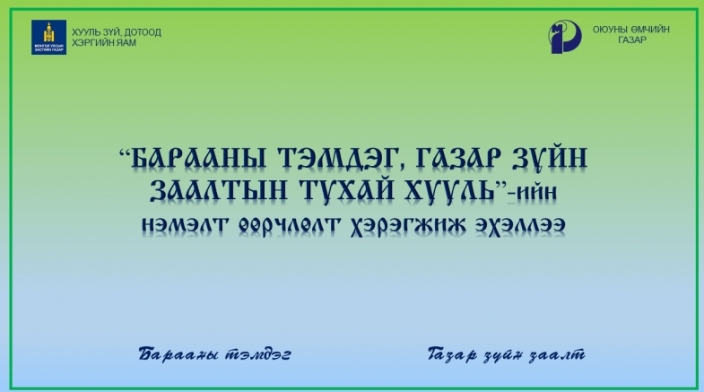 “БАРААНЫ ТЭМДЭГ, ГАЗАР ЗҮЙН ЗААЛТЫН ТУХАЙ ХУУЛЬ”-ИЙН НЭМЭЛТ ӨӨРЧЛӨЛТ ХЭРЭГЖИЖ ЭХЭЛЛЭЭ